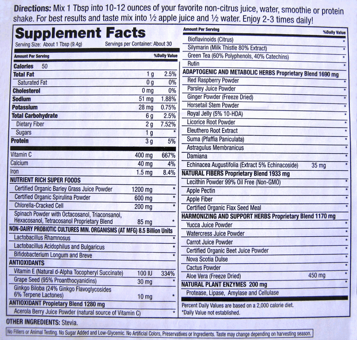 Miracle Greens feed the body at a cellular level, nourishing the body with antioxidants, co-nutrients, enzymes, vitamins, minerals and amino acids. Made with no allergens, certified organic barley grass and other natural ingredients, Miracle Greens includes antioxidants, adaptive herbs, natural fibers, harmonizing and support herbs and natural plant enzymes to ensure complete nutrition and good health.